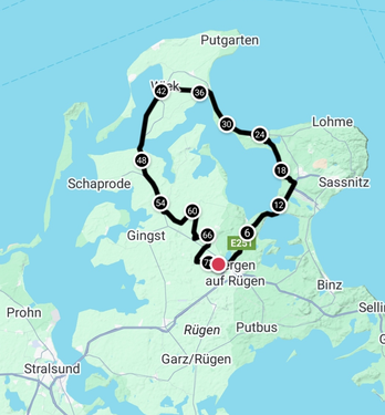 Wenn es noch zu kurz sein sollte, ab Juliusruh weiter nach Kap Arkona und dann an der Küste entlang bis Dranske und Wiek, dann sind es aber gute 100 km. Der Link zur Tour folgt bald hier.