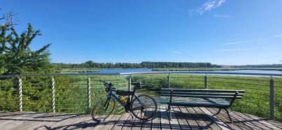 Wir folgen nun dem Ostseeküstenradweg zur Wittower Fähre. Der Blick auf Dranske und den Bug ist einmalig.