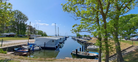 Hier gibt es (noch) nichts zu kaufen, dadurch kennen die meisten den Hafen am Bodden auch nicht. Der Ort wird jedoch gerade touristisch erschlossen und wird sich stark verändern.