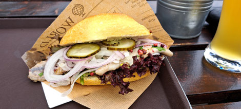 Dort gibt’s lecker Fischbrötchen und mehr.
