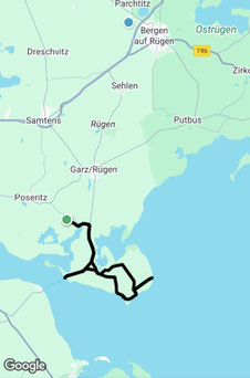 Wir sind mit dem Auto in Richtung Garz gestartet. In Garz sind wir in Richtung Glewitzer Fähre abgebogen.