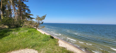 Viele Stralsunder sind hier am Strand. Durch den Küstenwald erreichen wir nun den Ort Grabow.