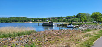 Hier müsst ihr euch entscheiden, rechts auf der Bergkuppe nach Jarnitz abzubiegen und Ralswiek zu umfahren, oder Ralswiek direkt zu besuchen. Fischbrötchen auf der Elbe gehen immer.